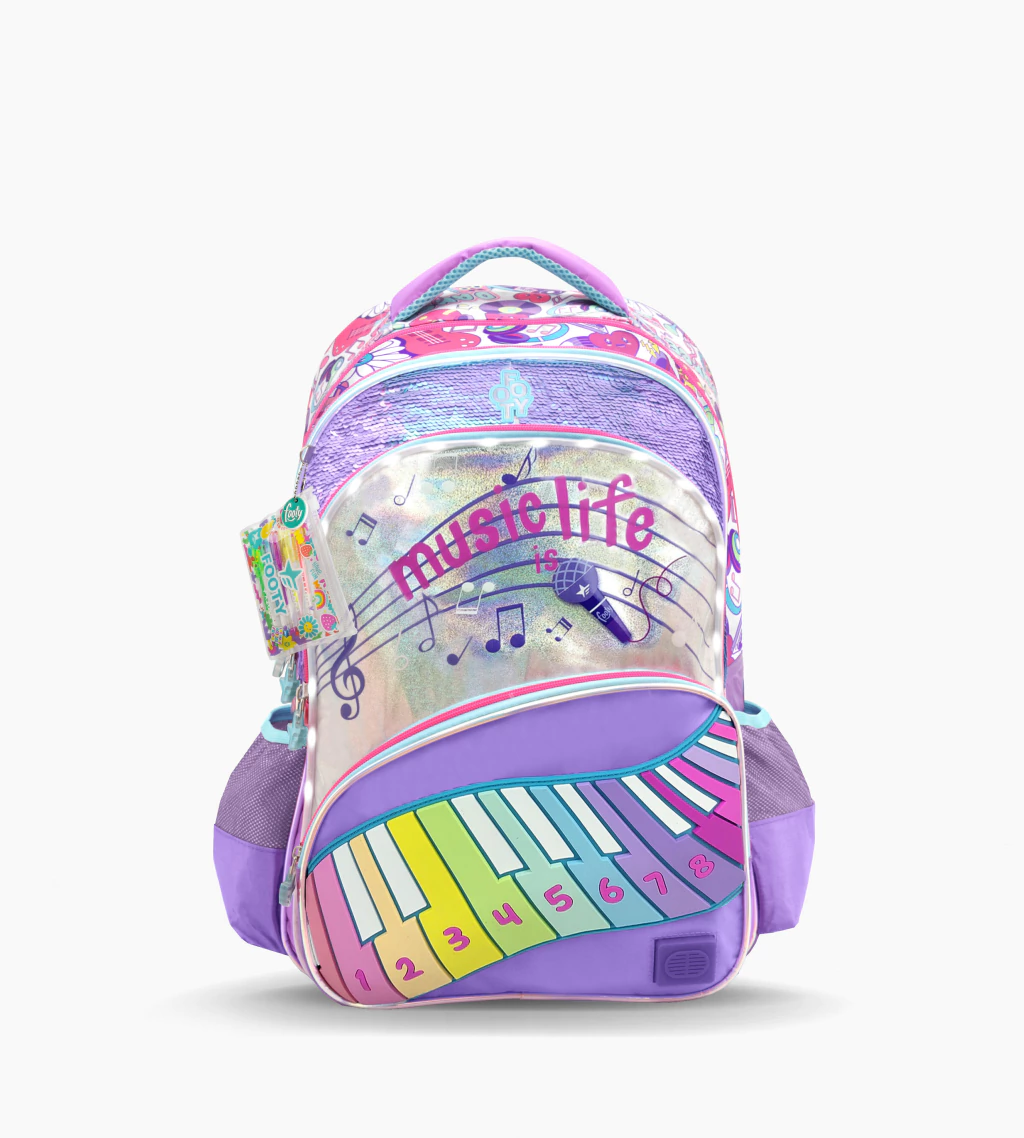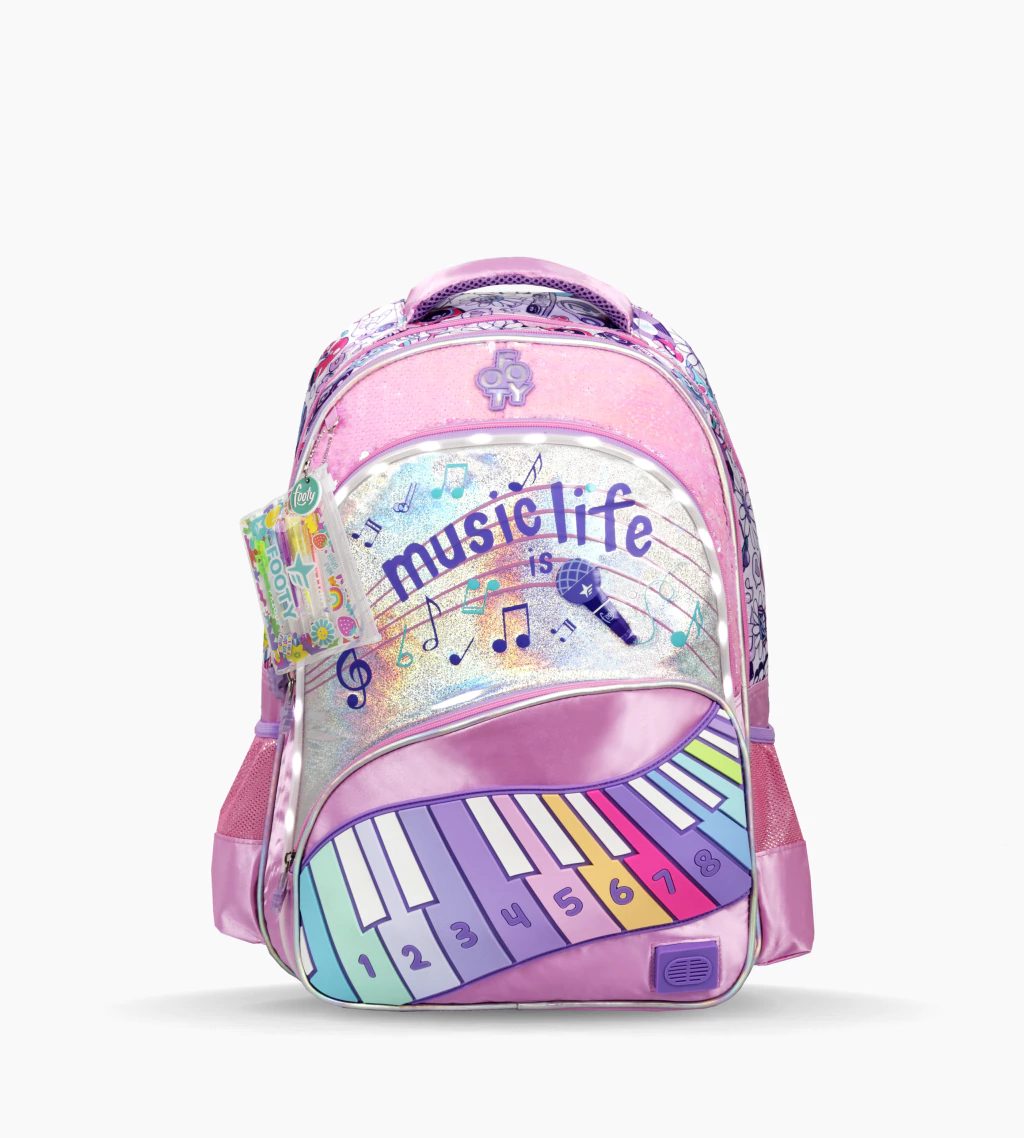 MOCHILA FOOTY 18¨ ESPALDA MUSIC LIFE CON LUZ Y NOTAS MUSICALES F26413