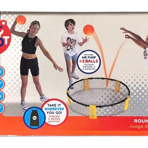 ROUND NET BALL GAME. INCLUDES: 2 BALLS. AN AIR PUMP AND A STORAGE BAG. PL57